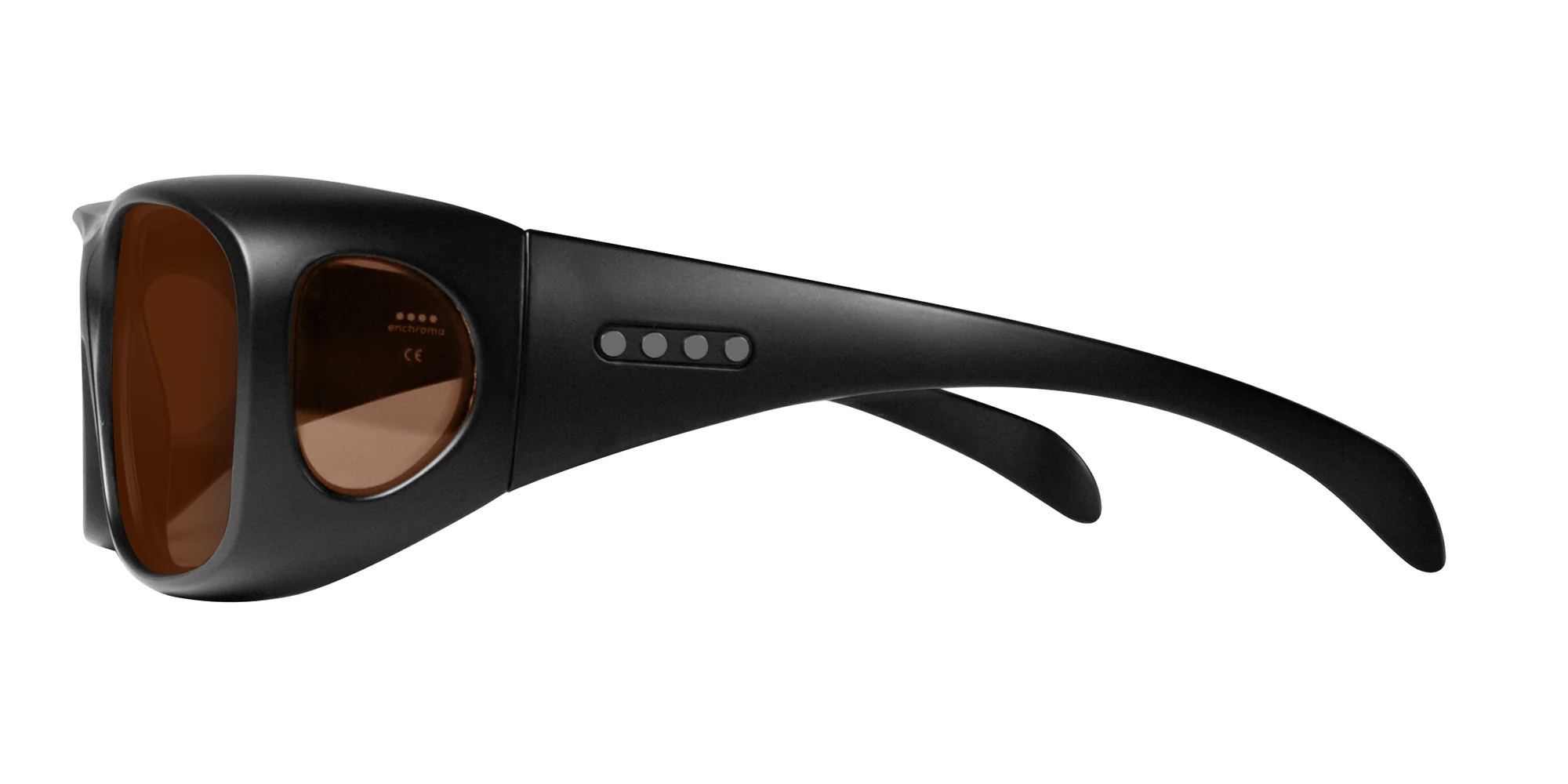 New Altavista improves on the ability to be worn over your prescription glasses by increasing its size where it was needed most, along the horizontal. The wrap-around design provides the right kind of protection and coverage from stray light along the top or side of the frame. This rectangular lens shape and superior coverage ensures that EnChroma lenses deliver exactly the filtering intended without top or side glare for those most bothered by excess light. That means that those with sensitive eyes or problems with glare, contrast and color vibrancy should use this frame for its excellent protection.